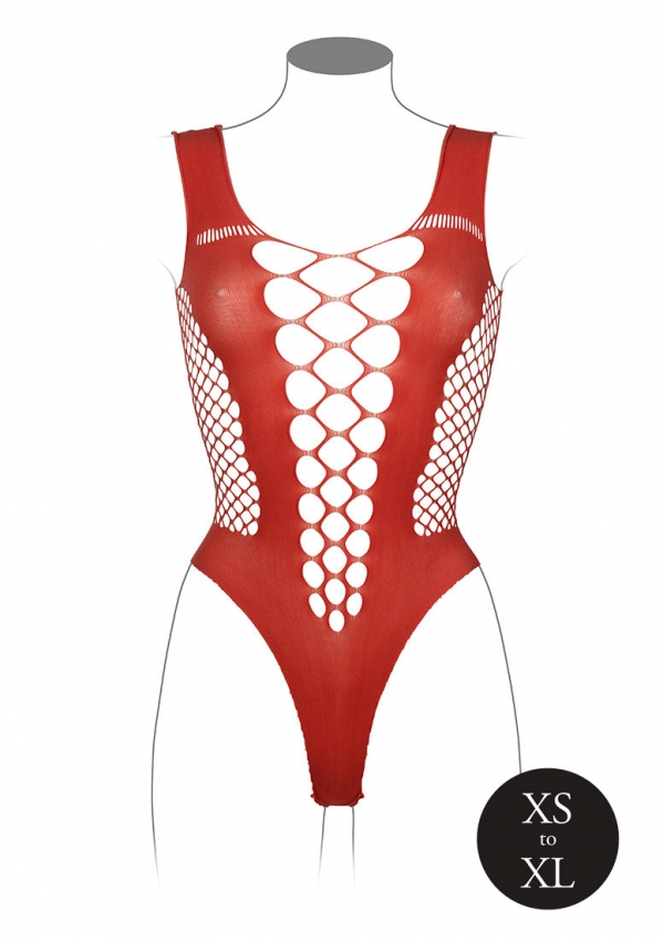 Teddy met V-hals met een sexy combinatie van open visnet en opaque stroken om de lichaamsvorm te accentueren. De zachte, superelastische stof is geschikt voor maten XS tot XL.