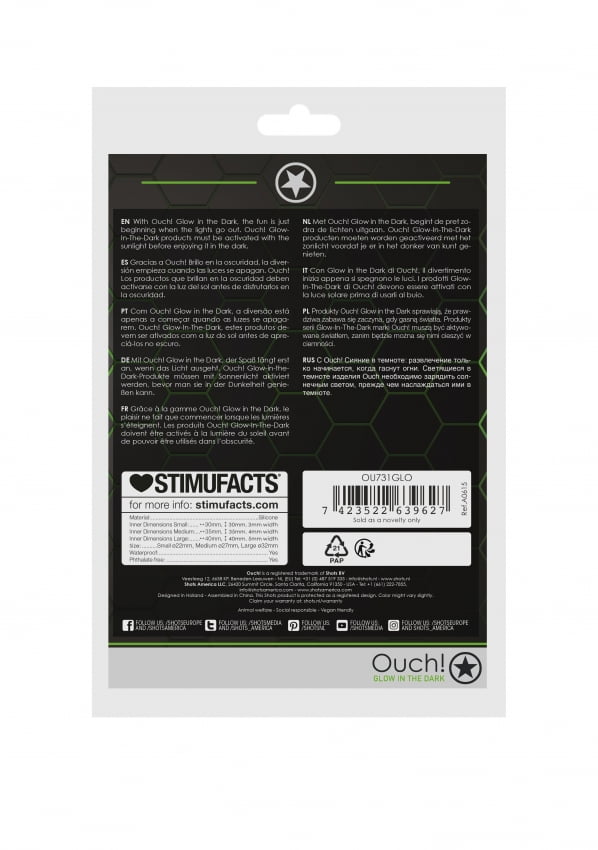 Ouch! Glow in the Dark, de toekomst van bondage is hier. Het design heeft het autentiek bondage uiterlijk, maar brengt licht in het duister door zijn fluoresecrende groene details waardoor alles een feest wordt. Deze penisring bevat twee ringen die comfortabel en rekbaar zijn. De ringen verbeteren je seksuele daden en brengen vele mogelijkheden met zich mee door de flexibiliteit. Ouch! Glow-In-The-Dark producten moeten worden geactiveerd met het zonlicht voordat je er in het donker van kunt genieten.
