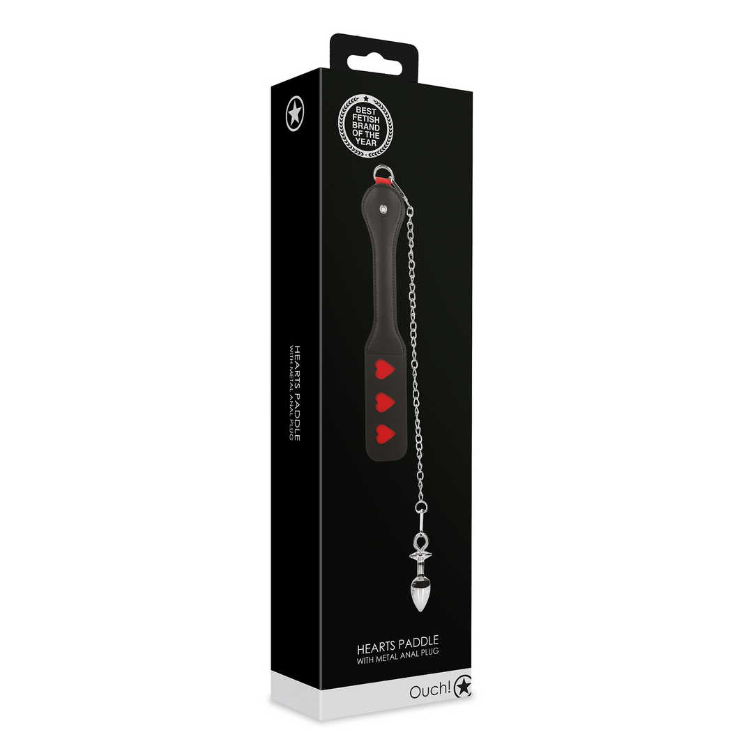 Harten Paddle met Metalen Anaal Plug – Zwart